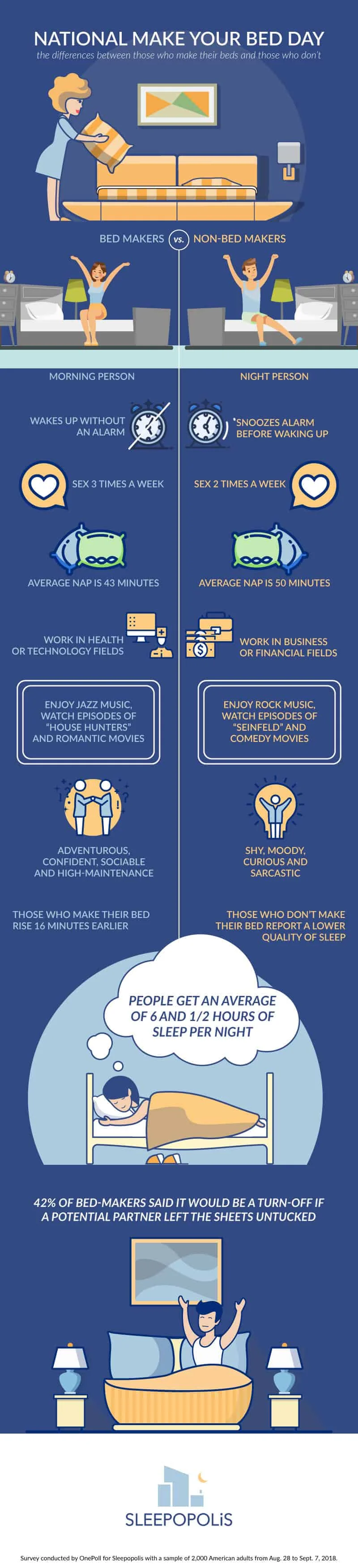 To celebrate this fun sleep-related holiday, we at Sleepopolis decided to commission a survey to see what making or not making your bed might say about YOU!
